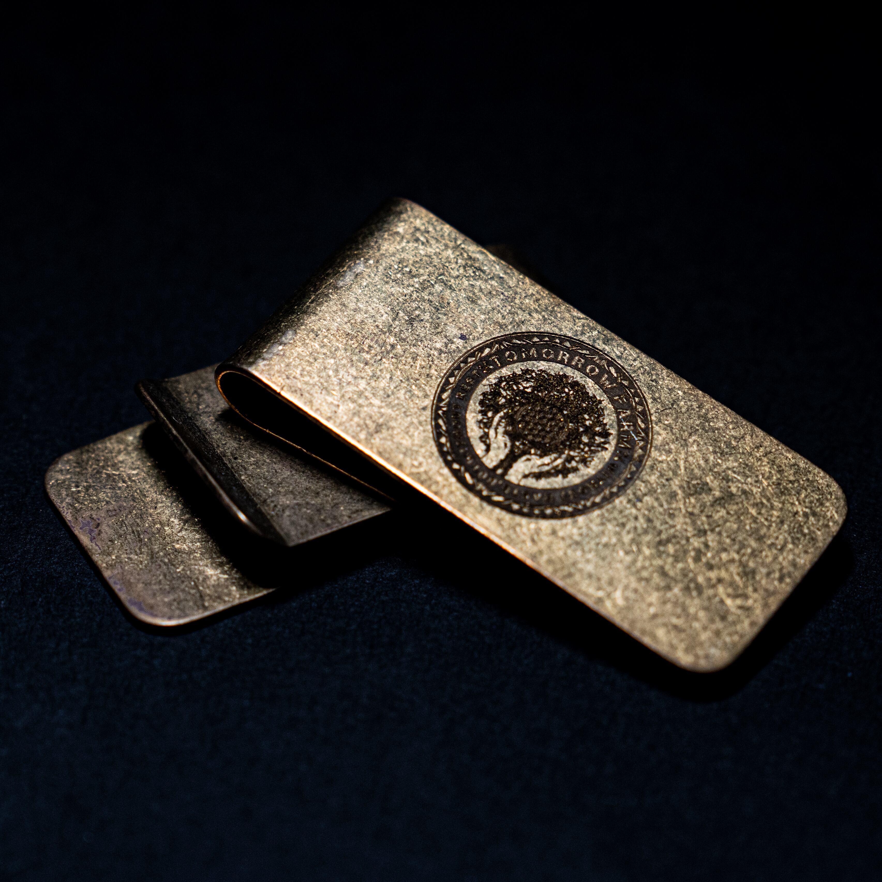 TOMORROW FARMのロゴが刻印されたオリジナル真鍮マネークリップ